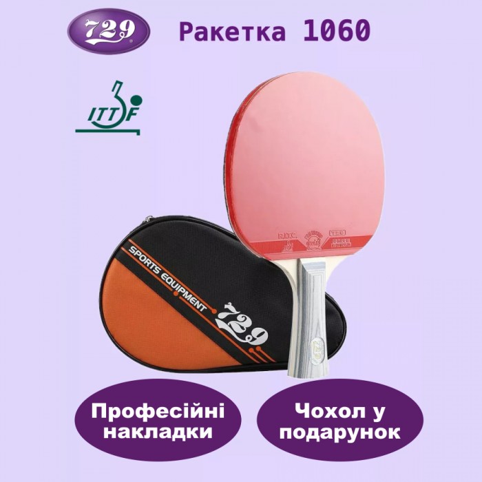 729 1060 - Універсальна ракетка для захисту та нападу, виготовлена з 5 шарів твердих порід дерева, з високою швидкістю відскоку м'яча, високим ступенем обертання м'яча
