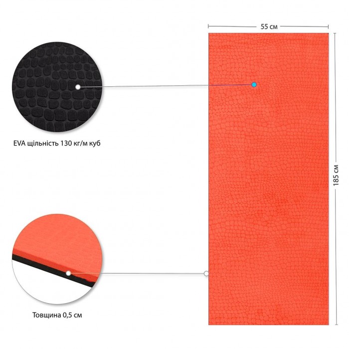Коврик IVN для йоги и фитнеса оранжево-черный 1850х550х5мм EVA – легкий и универсальный коврик для йоги и фитнеса.
