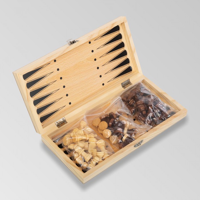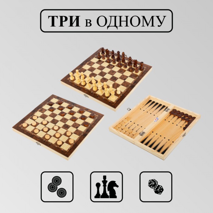 Подарите себе и близким часы увлекательного досуга с универсальным набором настольных игр 3 в 1! В комплект входят классические шахматы, шашки и нарды — всё, что нужно для интересного и интеллектуального времяпрепровождения.